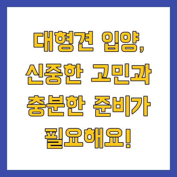 대형견 입양은 단순히 귀여운 강아지를 데려오는 것이 아니라, 한 생명을 책임지는 중요한 결정이에요.🤔 대형견은 소형견에 비해 더 넓은 공간, 더 많은 활동량, 더 꾸준한 훈련이 필요하답니다. 입양 전, 나의 생활 환경과 라이프스타일을 꼼꼼하게 고려하고, 충분한 경제적 준비가 되어 있는지 확인하는 것이 중요해요. 대형견과 함께 행복한 삶을 꿈꾼다면, 신중한 고민과 충분한 준비를 통해 책임감 있는 견주가 되어주세요.💖🐶 대형견 친구들은 당신의 사랑과 관심에 보답하며 평생의 행복을 선물해 줄 거예요!🎁